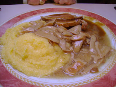 Um prato com polenta – a polenta é muito saborosa, feita com a sêmola mais grossa do que vemos normalmente por aqui.